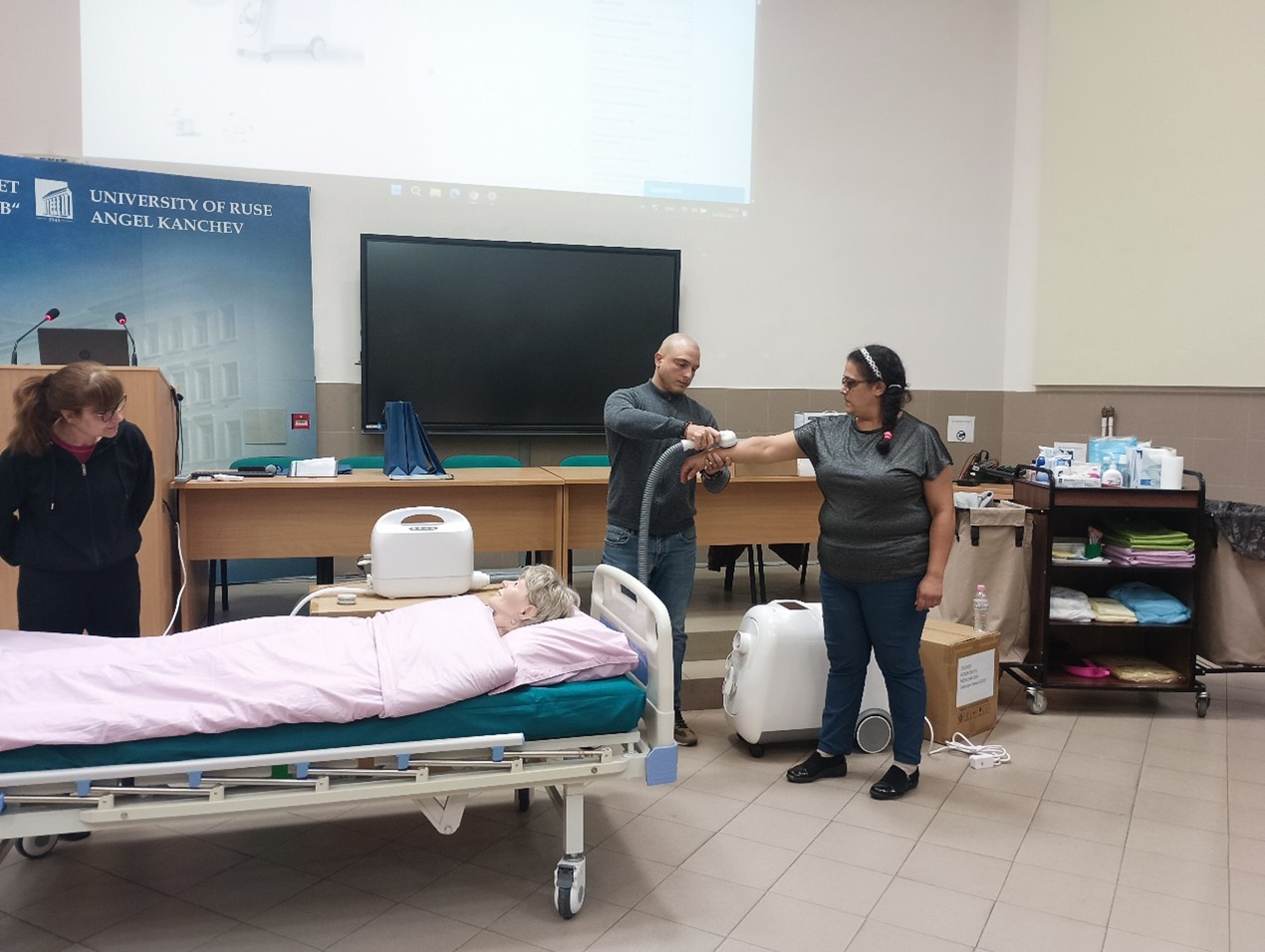 На 24.10.2025г.  в Русенски университет "Ангел Кънчев", Катедра Здравни грижи се проведе „Семинар с демонстрация на иновативна система за къпане на лежащо болни" от МЕДИЛИНК гр. Варна, с лектор д-р Рафи Караджиян и екипът му.