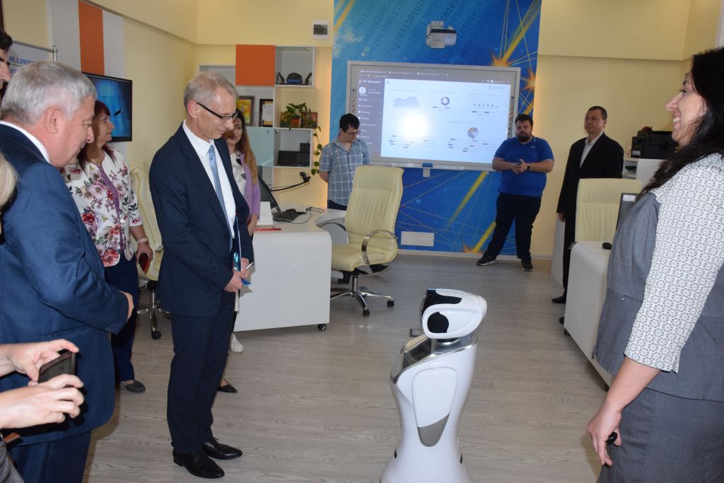 The award ceremony was held in the European Educational centre for PhD students of the University of Ruse, equipped with state-of-the-art technology. The guests were welcomed by the hosts and their robot, who sang their favourite song “White Rose”.
