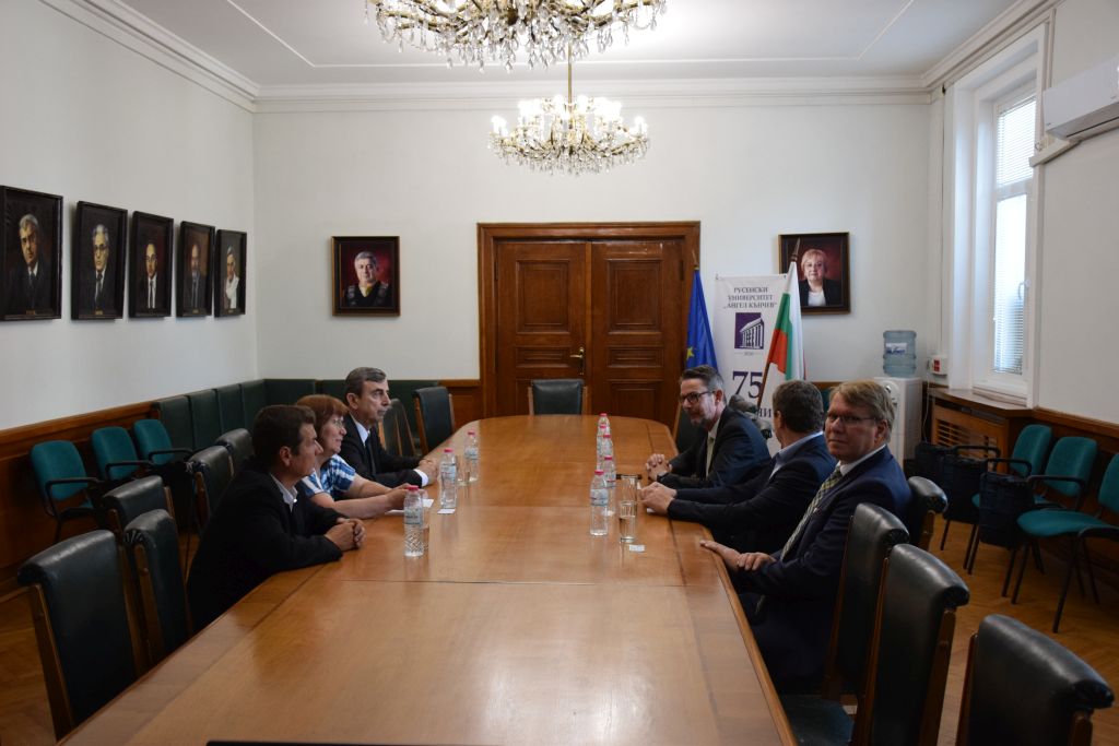 Good perspectives were outlined for the University of Ruse after the visit of Brent LaRossa, Attaché on Cultural and Educational Affairs at the American Embassy in Sofia. He was received by the Vice-Rector on internationalisation and communication policies, Assoc. prof. Dessislava Atanassova, PhD. Lecturers from the Faculty of Business and Management, led by the Dean, Assoc. prof. Milena Kirov, DSc participated in the meeting. After a brief presentation of the University, the discussion moved on to the main reason for the visit – the joint project "Academy for Women Entrepreneurs" of the Faculty of Business and Management and the American Embassy. Mr. Brent LaRossa expressed his gratitude for the involvement of the University of Ruse in this global initiative of the US State Department and his firm belief that the present partnership will develop into an efficient long-term cooperation.
