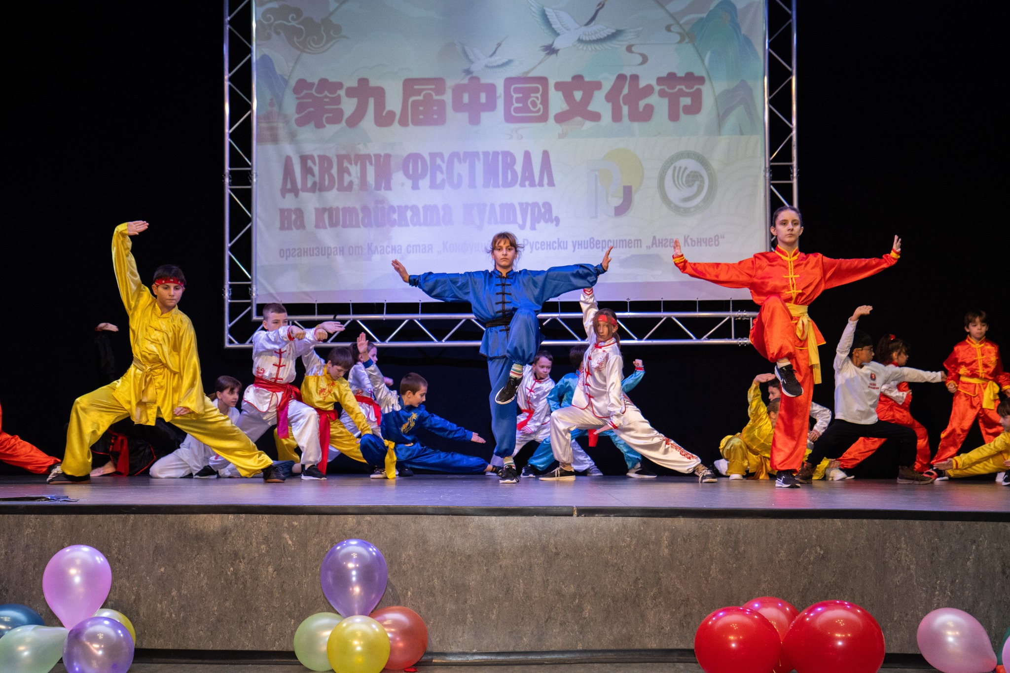 The festival's concert programme began with the Kalagia Sports Club, led by Maria Nedelcheva. This year, the university's long-standing partners had prepared an impressive spectacle in which traditional Chinese martial arts were combined with artistic pantomime performances.