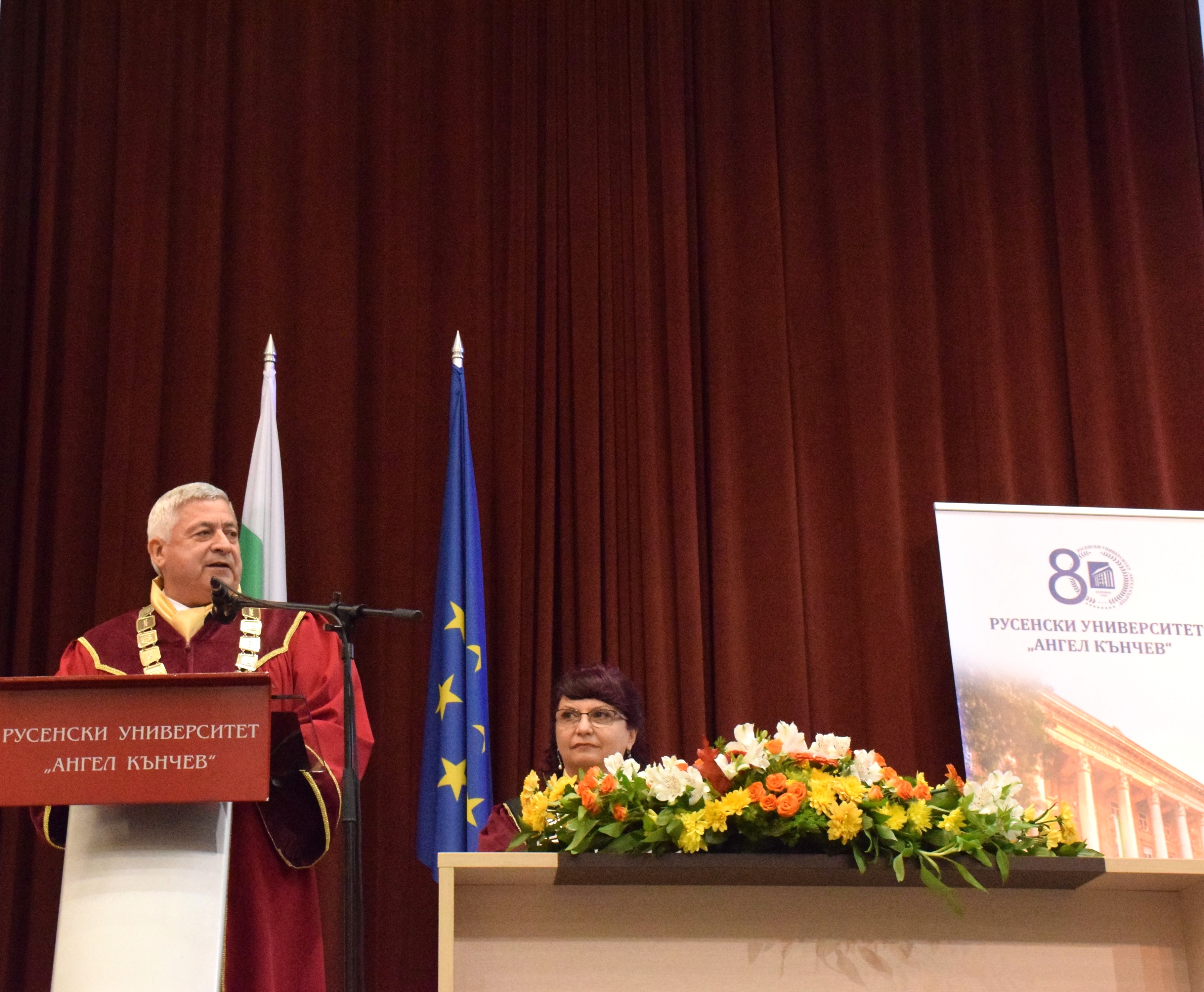 On behalf of the management and academic community of the higher education institution, the ceremony was also attended by: the Chairman of the General Assembly and Honourary Rector of the University of Ruse, Academician Hristo Beloev, DscEng,  the Vice-Rector for Academic Affairs, Professor Teodor Iliev, PhD , the Vice-Rector for International Cooperation, Associate Professor  Galina Ivanova, PhD and the Vice-Rector for Research Professor, Daniel Bratanov, PhD, deans of faculties, members of the Academic Council and students.