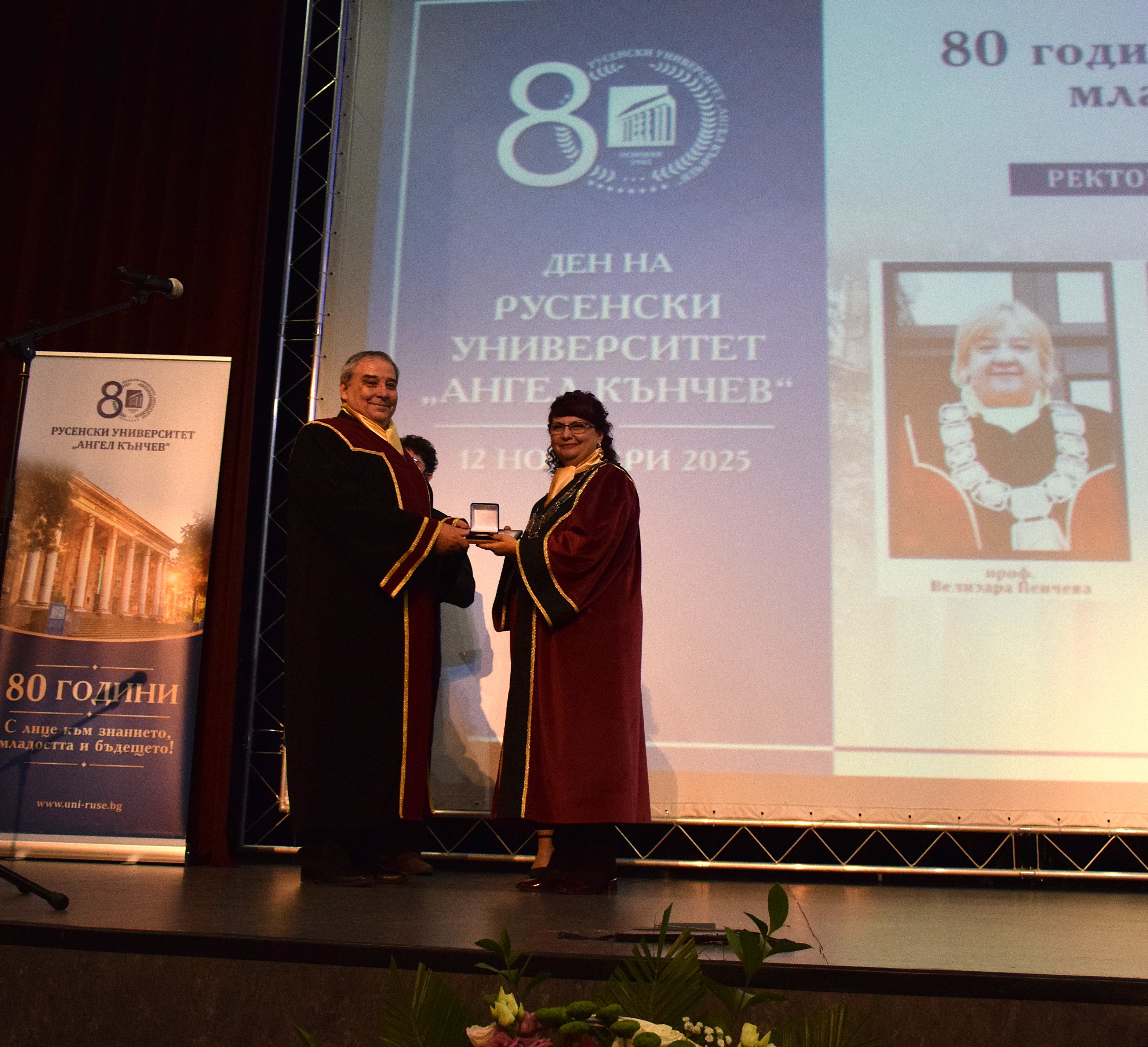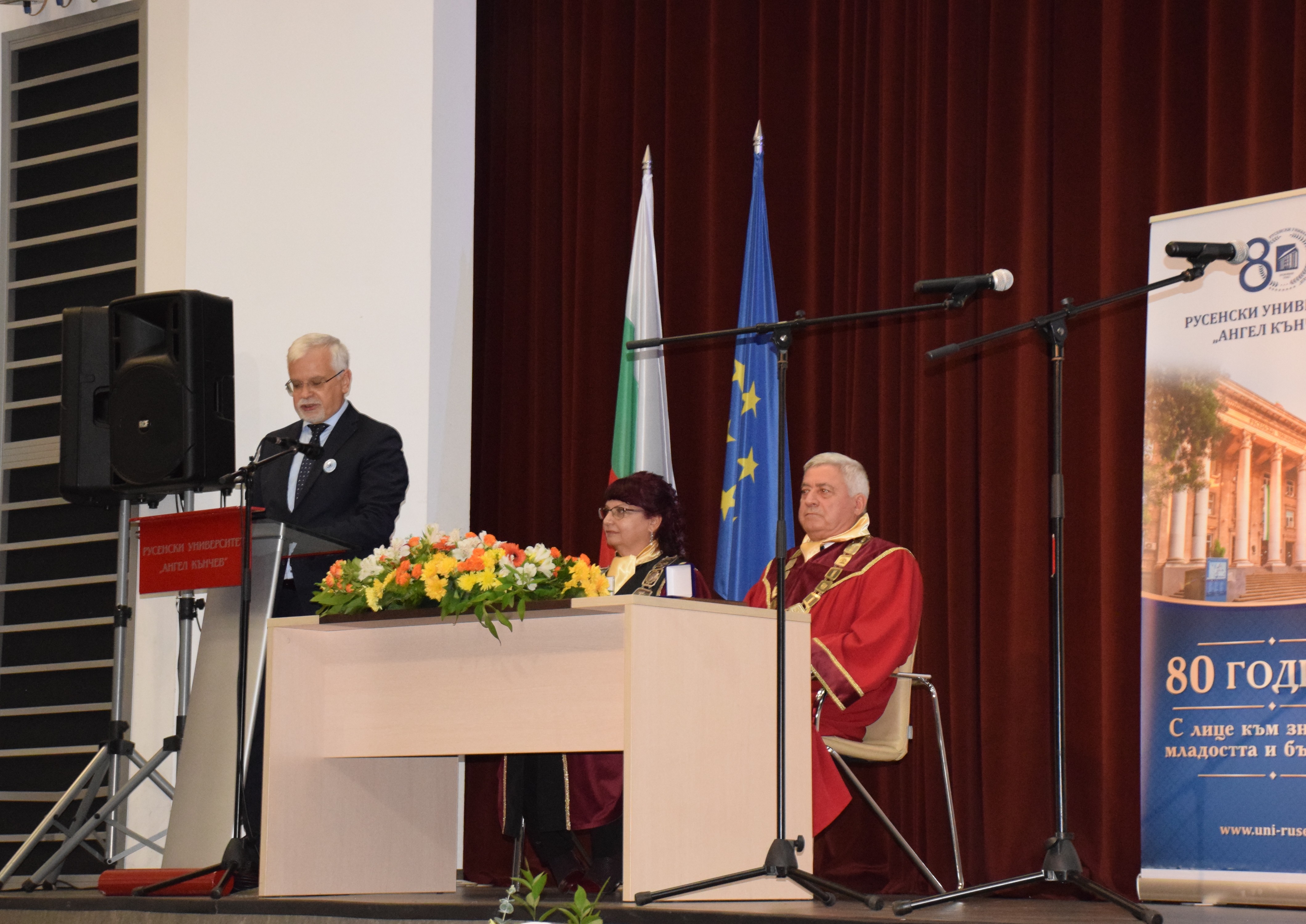 Guests at the ceremony included the Rector of the University of Ruse "Angel Kanchev", Assoc. Prof. Desislava Atanasova, PhD, Acad. Hristo Beloev, Honourary Rector and Chair of the University General Assembly,  DscEng, Vice-Rectors Prof. Teodor Iliev, PhD and Assoc. Prof. Galina Ivanova, PhD.