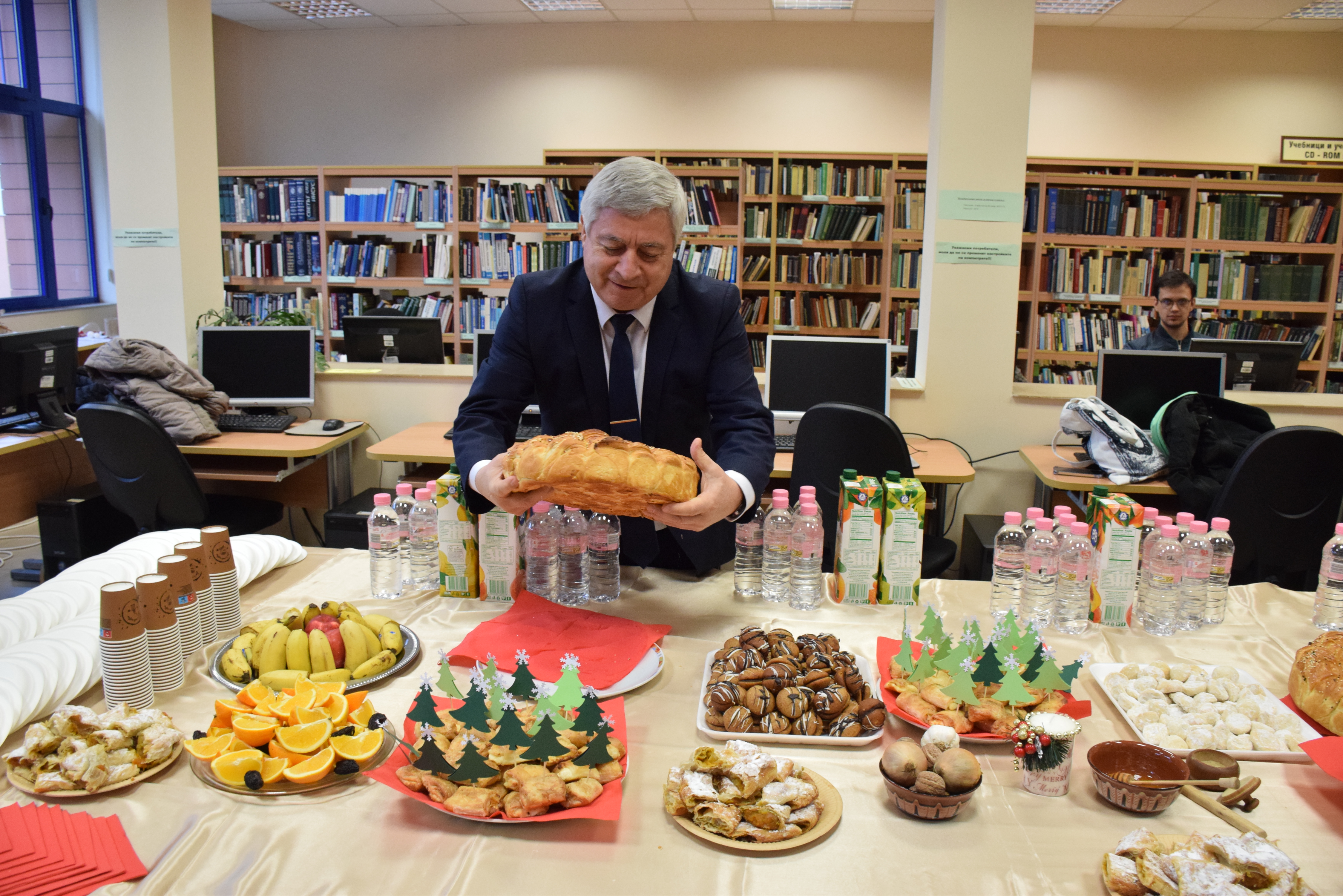 A traditional Christmas table was set up in the reading room of the university library, and Acad. Hristo Beloev, DscEng broke the ceremonial loaf of bread.